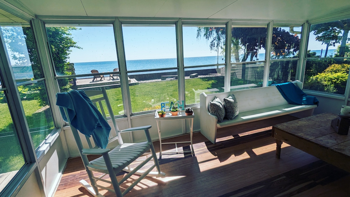 Piękny, przytulny domek z 3 sypialniami przez cały rok. Wygodnie śpi 6 osób. Zrelaksuj się i podziwiaj wspaniałe widoki na jezioro Erie. Obudź się przy najpiękniejszym wschodzie słońca. Pieczone pianki na palenisku. Grill na miejscu , Wi-Fi. Świetne miejsce na winiarnie, ptaki, wędkarstwo, zwiedzanie, Pelee Island, obszary ochrony przyrody, szlaki spacerowe. Zobacz Park Narodowy Point Pelee. Rustic Beach/boat launch in walking distance. 12 minutes to Leamington and everything you need.