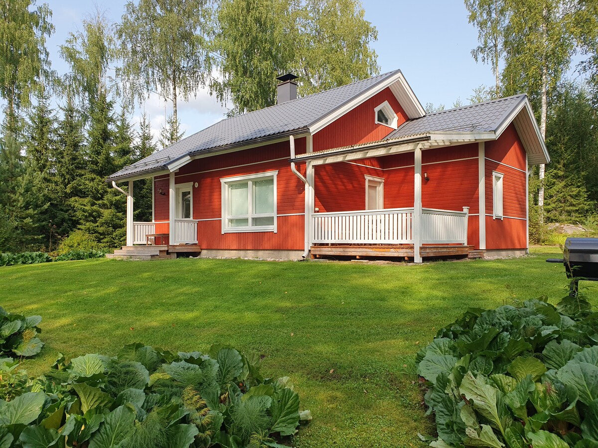 Domek znajduje się w Kannonkoski na brzegu jeziora Kivijärvi. Miejsce jest spokojne, malownicze i o wieczorach zalewa je słońce. Główna chata posiada 3 sypialnie i rozkładaną sofę, miejsce dla 8 osób. W saunie mogą przebywać 5 osób. Ponadto główna kabina posiada pomieszczenie gospodarcze, kuchnię i 2 łazienki. Dla dodatkowego komfortu w domku znajduje się zmywarka, pralka, suszarka, kuchenka i Wi-Fi. W domku jest bieżąca czysta woda. Stacja ładowania samochodów elektrycznych.