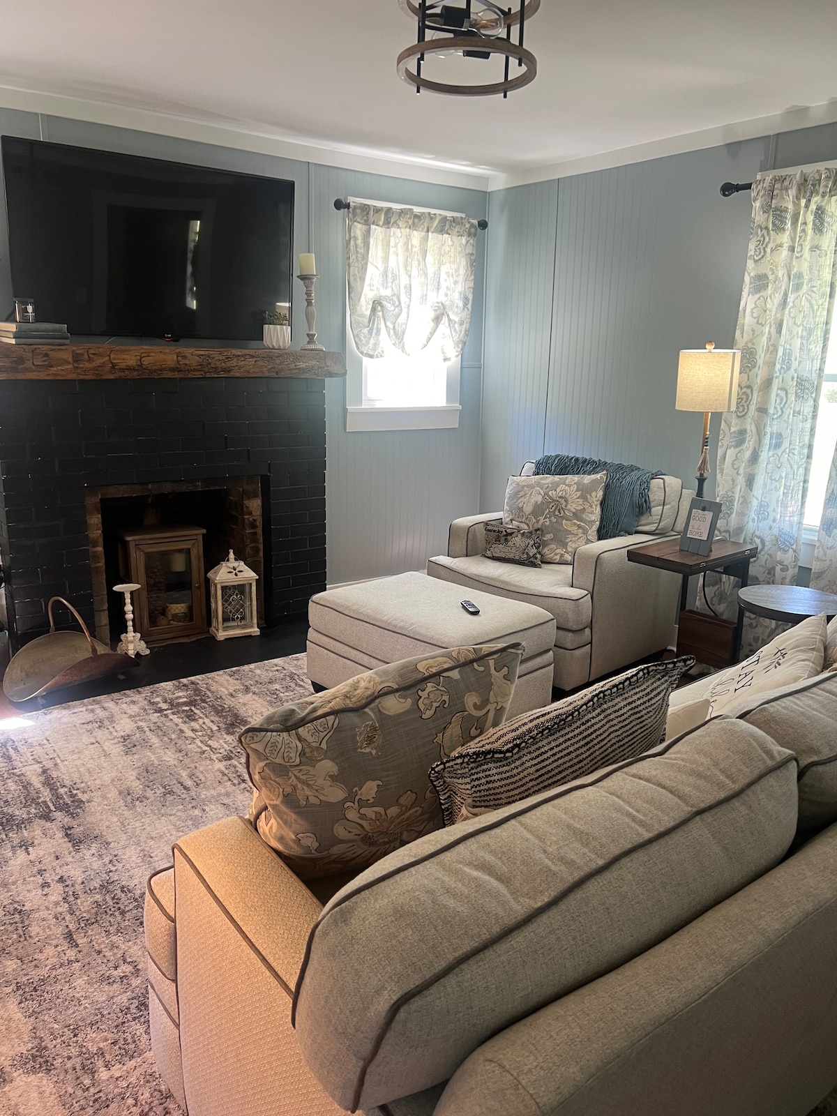 This 1,100 SF farmhouse is open and spacious - surrounded by nature with beautiful views. Don't be surprised if you see deer, wild turkeys, rabbits, and fireflies! Very comfortable and relaxing inside and out. There is an inviting deck for enjoying a cup of coffee or a glass of wine by the fire pit. Also, a cozy gas fireplace inside! No smoking allowed. Excellent high-speed internet. Gas and groceries are only 7-15 minutes away. One queen bed and 2 portable twins if needed.