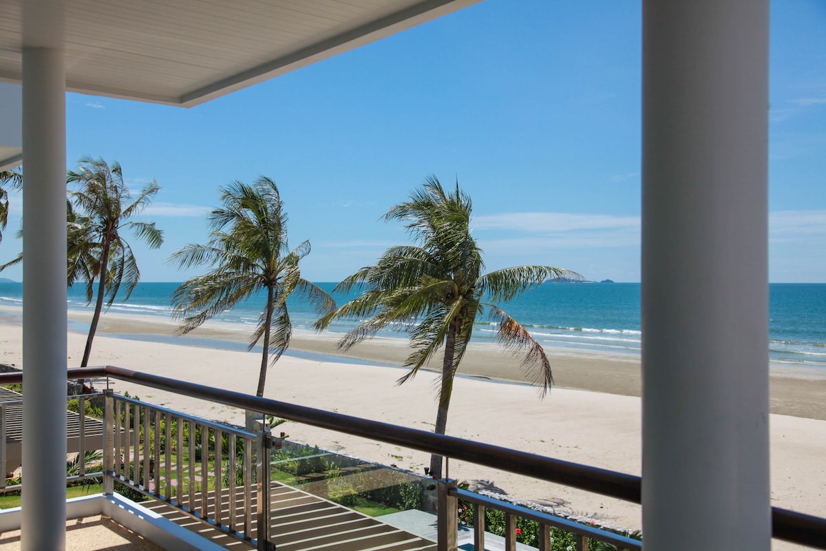 Prywatna willa nad morzem Kuiburi • Dom znajduje się nad morzem, minimalistyczny, przestronny ogród przed domem. Basen z widokiem na panoramę 180 stopni w pobliżu morza • Posłuchaj fal, ciesząc się widokiem na morze z sypialni. Wewnętrzna strefa kuchenna z w pełni wyposażonym sprzętem kuchennym. 1 salon z nagłośnieniem i 2 mikrofonami karaoke - Bezpłatny stół bilardowy Wi-Fi - Kajaki i deski podrzędne są dostępne za darmo, do nieograniczonego użytku. - Grill i przestrzeń na zewnątrz - W domu dostępny jest prywatny parking, parking dla 6-10 samochodów. - W domu zostało menu z jedzeniem. Możesz zamówić jedzenie.