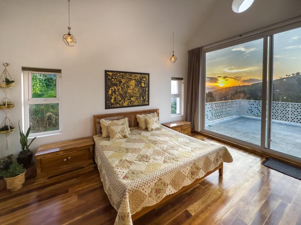 • 3 bedroom entire private villa with complete access • Stunning valley views with unforgettable sunsets • Natural pond with calming views from the living room • Large glass windows in all rooms for light and views • Elegant teak wood flooring for a warm luxury feel • Private home lift for effortless comfort • Just 6 km from city, peaceful yet easily reachable • Spacious, ideal for families and groups • Total privacy with no interruptions, fully yours • Perfect for relaxing stays