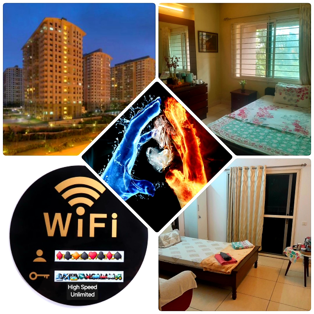 Doświadcz znakomitego luksusu w naszym apartamencie w North Bangalore, idealnie położonym w pobliżu Manyata Tech Park, Bhartiya City, Sobha City i różnych SSE. Hebbal Ring Road znajduje się w odległości zaledwie 5-6 km, a lotnisko BLR jest dostępne w ciągu 30 minut jazdy samochodem, nasz apartament oferuje wygodę i elegancję. Ciesz się zapierającymi dech w piersiach widokami, nowoczesnymi udogodnieniami i tętniącą życiem kulturą miasta na wyciągnięcie ręki. Twój idealny pobyt w Bangalore zaczyna się tutaj Dla Twojej rozrywki w cenę wliczony jest abonament Netflix i Amazon.