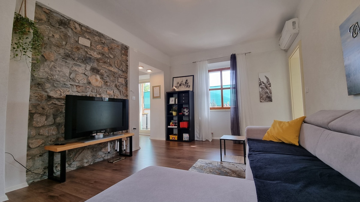 Apartament znajduje się w pobliżu centrum Opatija, zaledwie kilka minut jazdy samochodem lub osiem minut spacerem. Składa się z salonu, sypialni, jadalni, dwóch łazienek, kuchni, sauny, salonu na otwartej przestrzeni, tarasu, otaczającego ogrodu i parkingu. Dzięki temu, że jesteś na parterze z otaczającym ogrodem, masz wrażenie, że wynajmujesz dom, a nie mieszkanie.