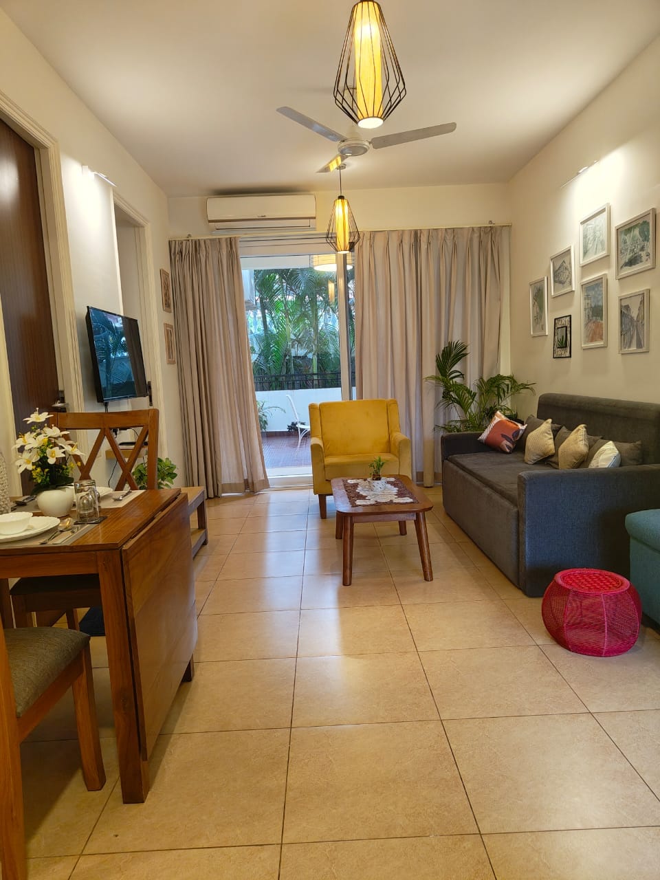 Zatrzymaj się w luksusie w naszym w pełni umeblowanym apartamencie 1BHK, oferującym przytulną sypialnię, dwie łazienki (jedna z nich, jedna wspólna ) oraz w pełni funkcjonalną kuchnię z urządzeniami i podstawowymi przyborami kuchennymi. Zrelaksuj się w przestronnym salonie z dużym inteligentnym telewizorem i eleganckim wystrojem wnętrz. Ciesz się wysokiej klasy meblami, które tworzą dom z dala od domu. Idealny zarówno na krótkie, jak i długie pobyty, ten apartament obiecuje komfort i wygodę w doskonałej lokalizacji w mieście. Zarezerwuj teraz wyjątkowy pobyt!