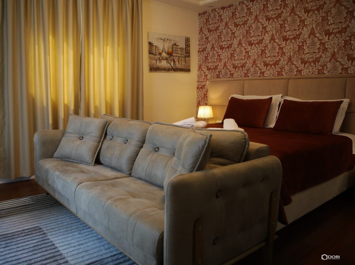 Korçë 1BR Gem z klimatyzacją, parkingiem, Wi-Fi Historyczny urok