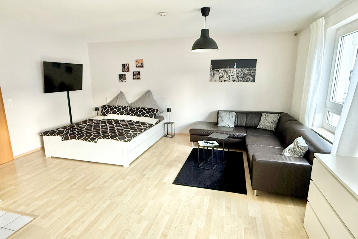 W pełni wyposażony apartament designerski o powierzchni 46 m2, zbudowany w 2023 roku w atmosferze naszego zabytkowego budynku fabrycznego, jest Twoją bazą wypadową w Stuttgarcie. Łączy on wyjątkową atmosferę loftu z najnowocześniejszym komfortem mieszkania. Kolej miejska, szybka kolej miejska, autobus, droga krajowa: połączenie z centrum Stuttgartu (10 min), siedzibą Mercedes-Benz (5 min) lub regionem jest optymalne. Łóżko sprężynowe premium, w pełni wyposażona designerska kuchnia, przestronne miejsce do pracy przy oknie i ekskluzywna łazienka z naturalnym oświetleniem.