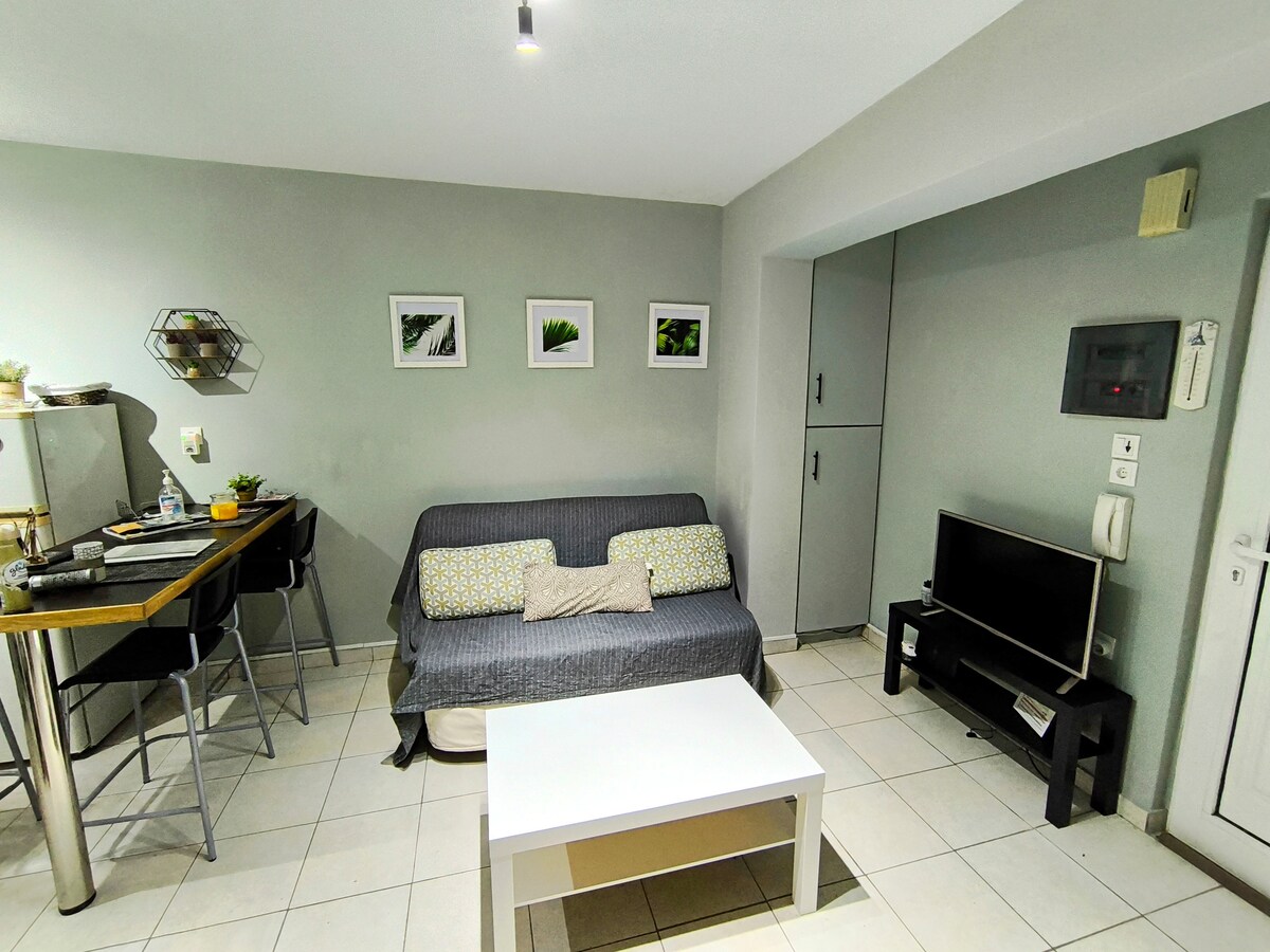 Nowo wyremontowany w pełni wyposażony apartament w piwnicy. Znajduje się w cichej okolicy, bardzo blisko centrum miasta. Może pomieścić do 4 osób dorosłych . Doskonała lokalizacja! W odległości zaledwie 10 minut spacerem od centrum Kos i starego miasta. Najbliższa plaża znajduje się zaledwie 15 minut spacerem od apartamentu. Supermarkety ,piekarnie , sklepy spożywcze i tawerny znajdują się w odległości zaledwie 10 minut od studia! 15 minut drogi od dworca autobusowego i długodystansowego dworca autobusowego.