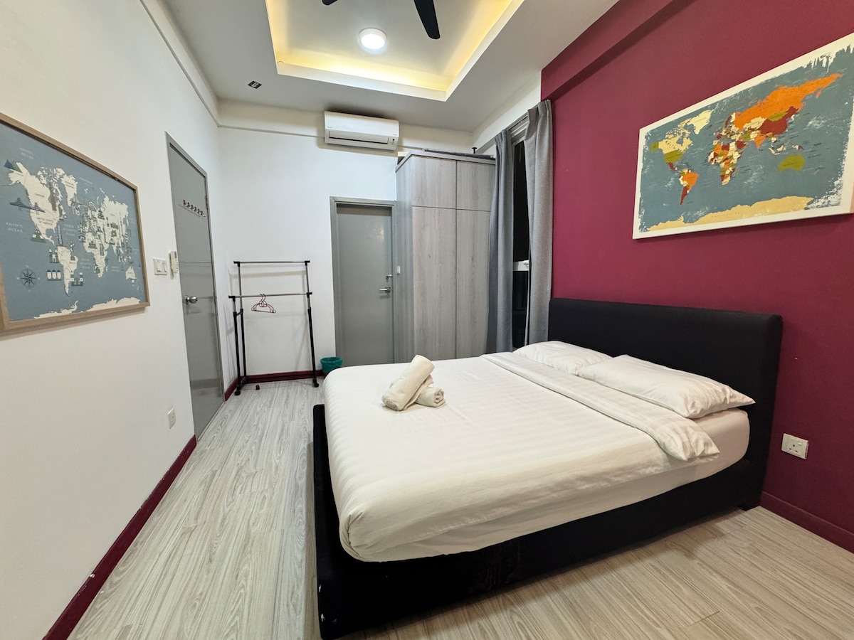 Vetro11 (nasz apartament) jest dobrze wyposażony we wszystko, czego potrzebujesz: wygodne łóżka, przytulną część dzienną, szybkie Wi-Fi i w pełni funkcjonalną kuchnię. Zatrzymaj się w Kota Kinabalu! Witamy w naszym komfortowym i strategicznie położonym apartamencie serwisowym – idealnym dla rodzin, przyjaciół lub osób podróżujących służbowo. Pobliskie atrakcje: Centrum handlowe IMAGO – 3 km (6 min) Plaża Tanjung Aru – 3 km (7 min) Niedzielny targ na Gaya Street – 5 km (10 min) Międzynarodowy port lotniczy Kota Kinabalu – 7 km (13 minut)