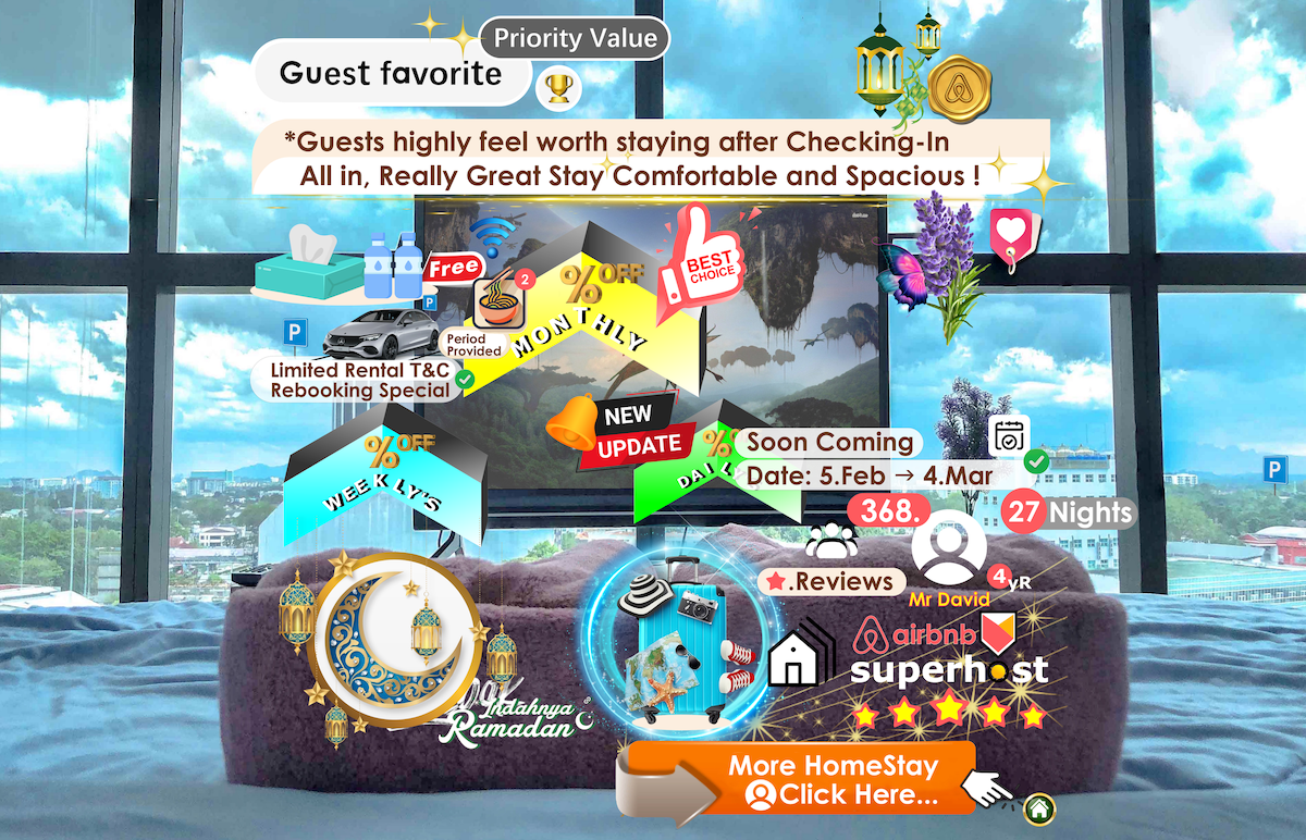 Mój dom znajduje się w bardzo strategicznej lokalizacji (centrum handlowe Boulevard), w pobliżu lotniska, dworca autobusowego, centrów handlowych i głównych atrakcji turystycznych. Dlatego mój dom jest odpowiedni dla osób podróżujących służbowo, par oraz osób podróżujących z przyjaciółmi i rodzinami Goście mogą korzystać z basenu, siłowni, sauny, łaźni parowej, sklepów i lokali gastronomicznych. Ciesz się podróżą i pobytem w moim domu, a jednocześnie odkrywaj atrakcje Kuching, takie jak wioska kulturowa Sarawak itp.