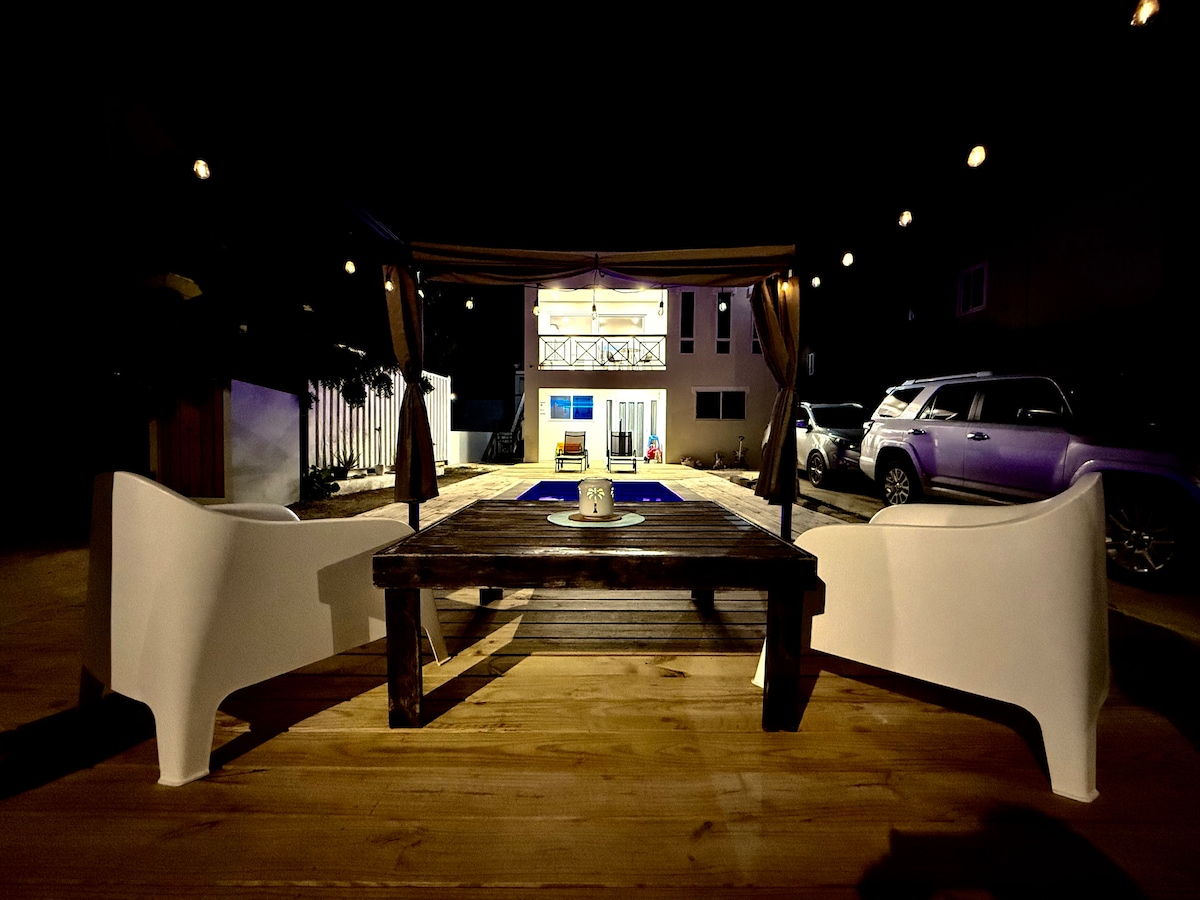 This luxury Villa with private pool is located in Playa (center of Kralendijk) with just two walking minutes to the ocean. A lively but still quiet neighborhood. The very heart of Kralendijk you can reach within 15 minutes walking. We provide a fully equipped kitchen, a 70 sqm spacious living room with all your heart desires. A widely set covered porch at the backyard with direct access to the private pool with sunchairs are at your disposal.