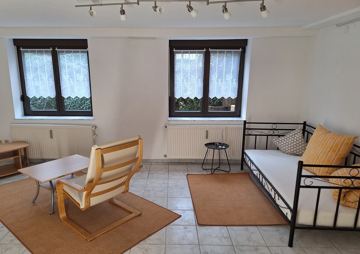 Nowoczesny, umeblowany apartament jednopokojowy w piwnicy domu jednorodzinnego na wsi. Prywatne wejście, prywatna łazienka, mały przedpokój. Wyposażenie techniczne: LAN/WLAN 50 Mbps, telewizor z odbiornikiem satelitarnym, piekarnik, czajnik, ekspres do kawy, lodówka 0dB, gniazda z USB. Pralka, suszarka, żelazko są dostępne na życzenie. Świeża pościel, ręczniki do rąk i pod prysznic są wliczone w cenę. Targiargi w Norymberdze 16 km, lotnisko Nbg. 15 km, rynek główny 9 km. Uniwersytet w Erlangen 26 km.