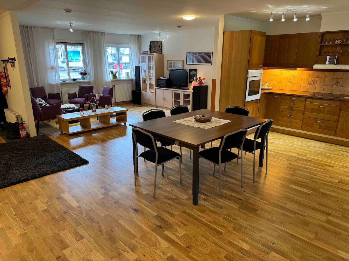 Fridfullt och lugnt boende nära naturen. Nära till mataffär ICA, lunchrestaurang och 2 pizzerior, elljusspår och natur. Lägenhet med två rum. Sovrum med dubbelsäng. Vardagsrum med bäddsoffa. Utrustat kök. Tillgång till tvättmaskin vid längre vistelse. Stor trädgård med uteplats. Husdjur välkomna. Gångavstånd till fint bad i ån Lagan sommartid. Det är en fin liten by men härlig natur men för den rastlöse finns det kanske inte så mycket att göra.
