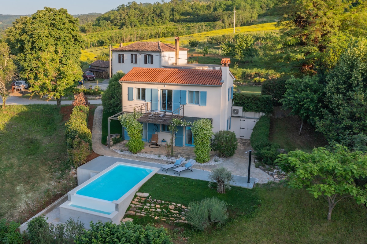 Dom był starym domkiem chłopskim odnowionym do nowoczesnych standardów z basenem. Cała nieruchomość jest do wyłącznego użytku. Jedyny i najbliższy dom znajduje się w odległości 50 metrów, ale pomiędzy nimi znajduje się gaj oliwny, więc nie można zobaczyć sąsiadów i na odwrót. Dom znajduje się na wzgórzu z bezpośrednim widokiem na dolinę Motovun i Mirna.