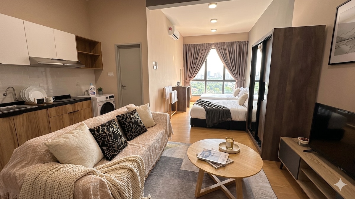 Luxury and cozy studio located in heart of the city close enough to the most lively spot in Kuantan. A best place to stay whether you come for leisure or work purpose. This living area offers a cozy space to relax with a 43" TV with 4k Netflix and Walking distance to TARC college Driving distance: > 5 min to UIA , IIUM >5 min to Kuantan Medical Centre (KMI) >10 min to Pusat Bandar Kuantan >15 min to tol Kuantan >15 min to Airport Kuantan >15 min to Gebeng Industrial >20 min to Teluk Chempedak