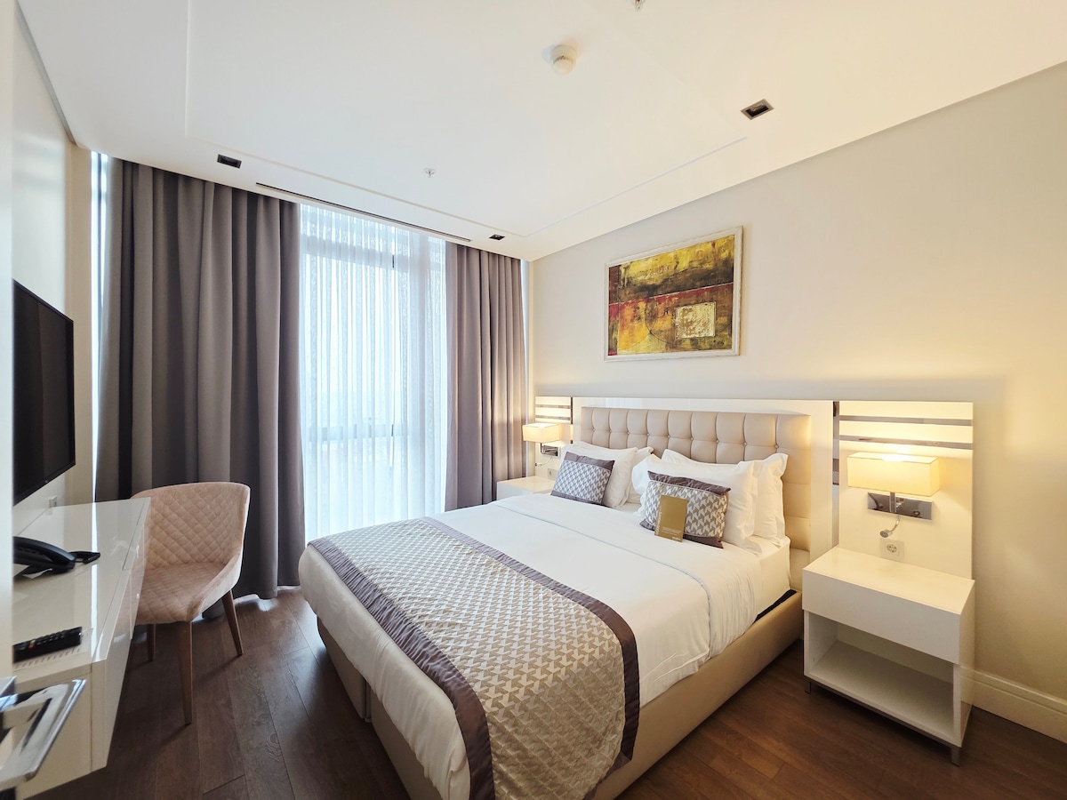 Podczas zakwaterowania w samym sercu Floryi, jednej z najbardziej tętniących życiem i centralnych dzielnic Stambułu, będziesz miał 1 przestronną sypialnię, w pełni wyposażoną kuchnię, salon i jadalnię, przestronny balkon, widok na basen i luksusową łazienkę z komfortem domu. BayMari Suites zostało starannie urządzone, dzięki czemu możesz poczuć się komfortowo w swoim domu podczas pobytu w Stambule. - Ochrona 24/7 - bezpłatny prywatny parking - Szybkie Wi-Fi - Recepcja -Pool View -Spacious Private Balcony