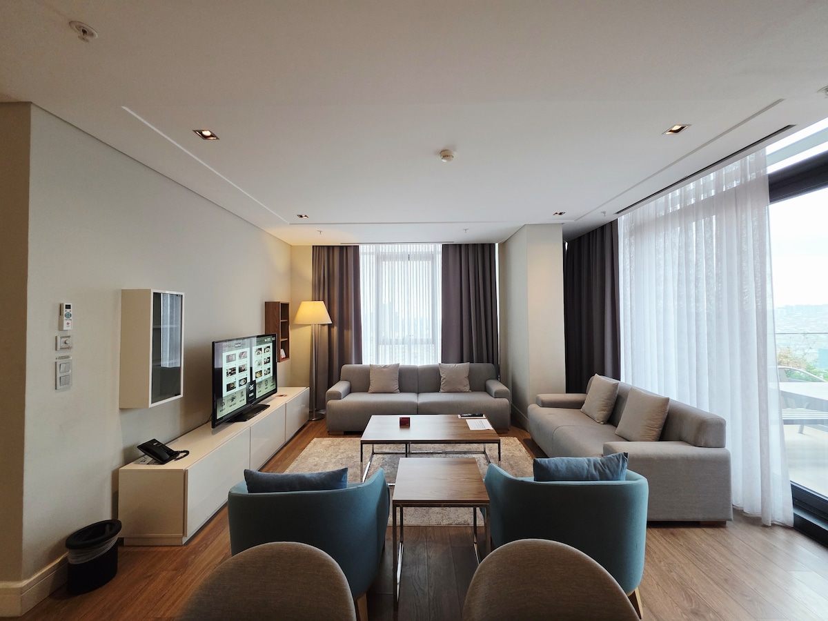 Located within the prestigious Wanda Vista Istanbul, this elegant residence sits in the heart of the Basın Ekspres / Güneşli – Mahmutbey business district. Designed to five-star residence standards, the apartment features **one bedroom with twin beds and one bathroom**, complemented by a stylish living area. Guests enjoy daily housekeeping, a fully equipped kitchen, and access to premium spa facilities, indoor and outdoor swimming pools, a Turkish hamam, and a fully equipped fitness center.