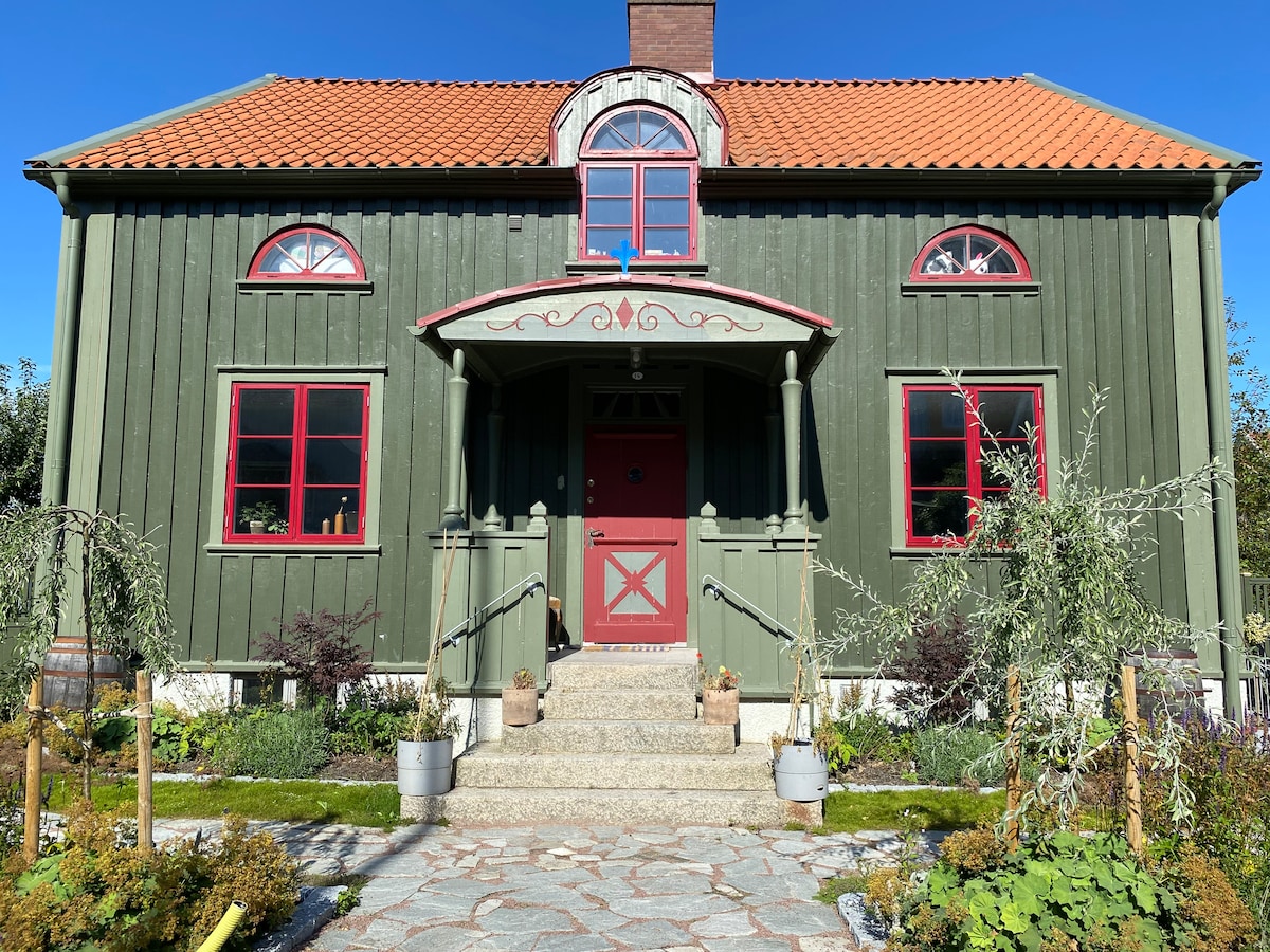 Witamy na uroczym piętrze domu, do którego można dostać się przez osobne wejście. Dom przeszedł niedawno gruntowną renowację w stylu typowym dla epoki. Obiekt znajduje się w dzielnicy Kungsladugård, Majorna. Park Slottsskogen znajduje się w pobliżu, a w kilka minut można dotrzeć do Mariaplan, gdzie znajdują się bary, restauracje i sklepy. Do centrum Göteborga można dojechać tramwajem w 15 minut. Kilka sklepów spożywczych znajduje się w odległości kilku przecznic.