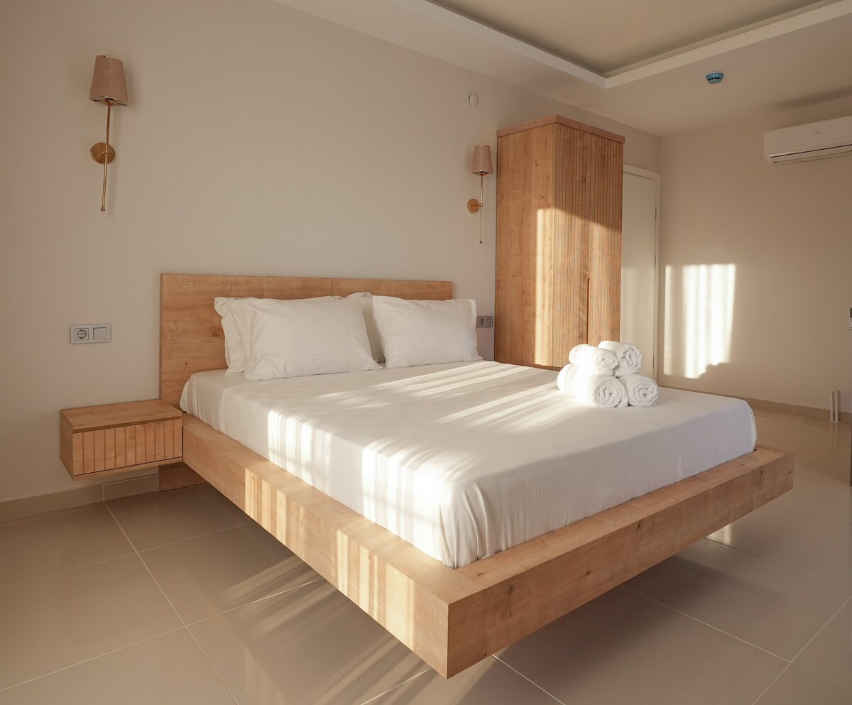 Nasze standardowe pokoje mają powierzchnię 50 m² i mają widok na ziemię z opcją łóżka typu King Size lub dwóch oddzielnych łóżek. Pokoje są odpowiednie dla 2 osób dorosłych + 1 dziecka lub 3 osób dorosłych. Łóżeczko dziecięce jest również dostępne dla dzieci w wieku 0-3 lat. Nasze standardowe pokoje są dostępne z balkonem, francuskim balkonem i bez balkonu. Wszystkie nasze standardowe pokoje mają część wypoczynkową. Nasi goście mogą skorzystać ze śniadania w naszym pokoju śniadaniowym, płacąc 8 euro za osobę.