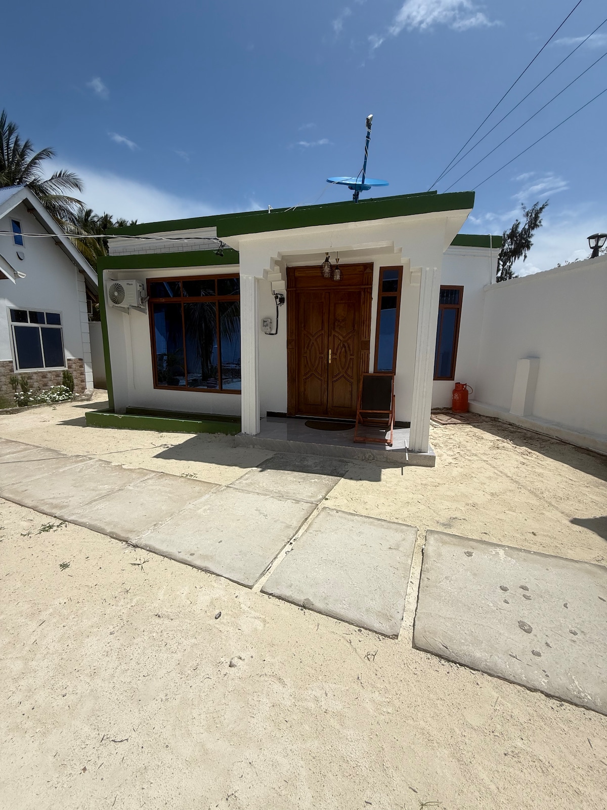 We have beautiful a house in Bwejuu . The House is in the first line , we have private pool . In addition, there are 3 large swimming pools and a restaurant The house is big: 2 bedrooms 2 bathrooms 3 toilletes Living room and kitchen (The kitchen is equipped with an oven, fridge,dishes,cutlery, blender, etc 2 Terraces AC Generator ( when the generator is running you have water, light, refrigerator, ceiling fans and a fridge,wi fi and charging socket) . African style deco is in the house