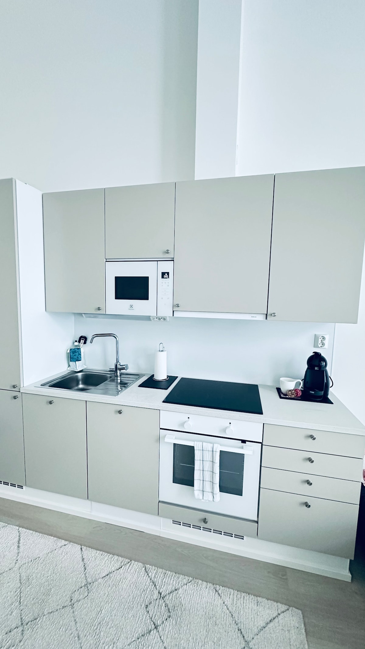 New apartment with best location in Tikkurila. Self check-in Only 250 meters from Tikkurila train station. Train connection 15 minutes to Helsinki center and 10 minutes to airport. Surrounded by supermarkets, coffee shops, restaurants etc. Free Wi-Fi. Capsule coffee maker with complimentary coffee. Fully equipped kitchen. Dimmable lights. Modern and stylish studio with everything you need.