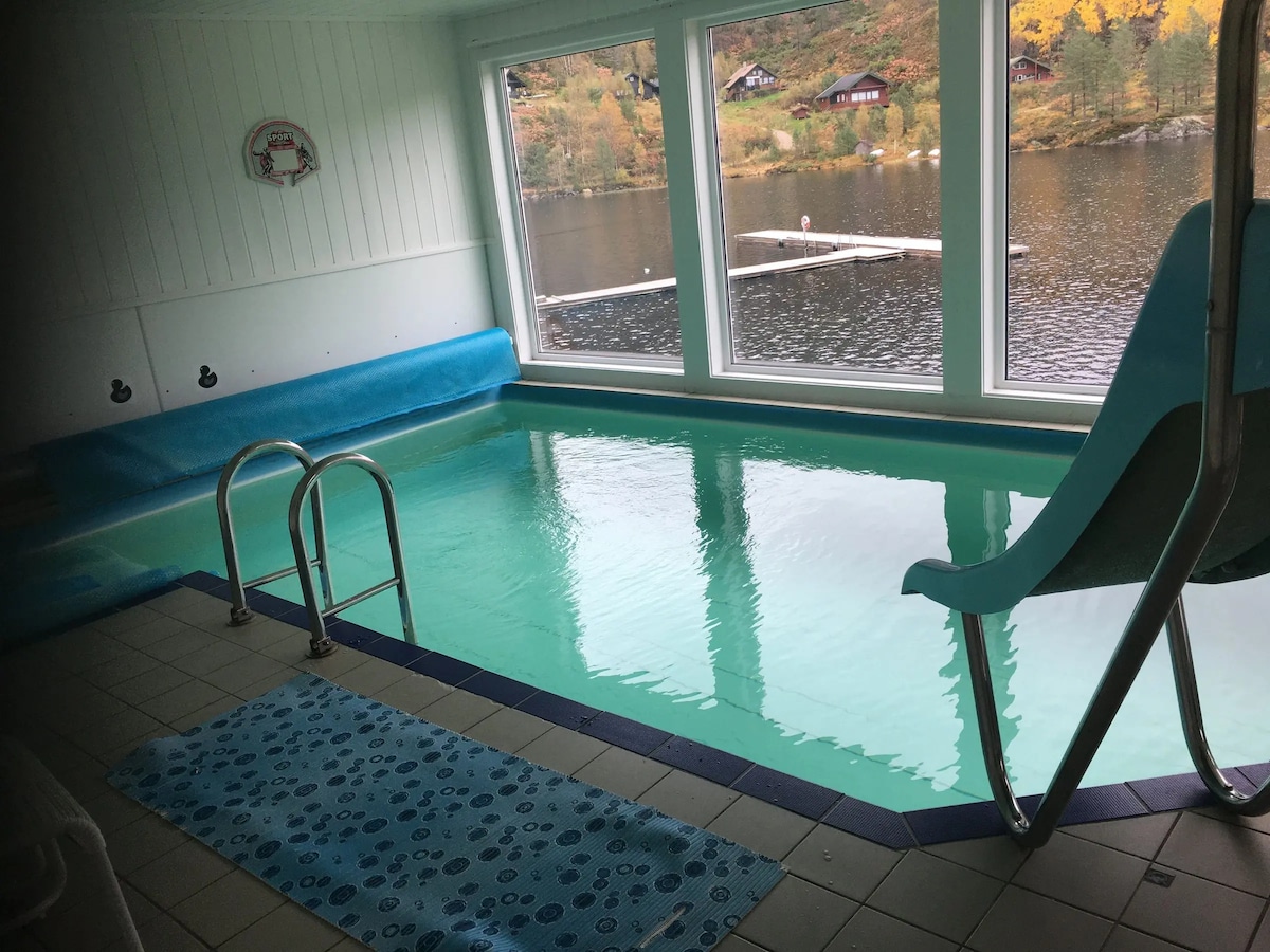 Stor familiehytte med innendørsbasseng