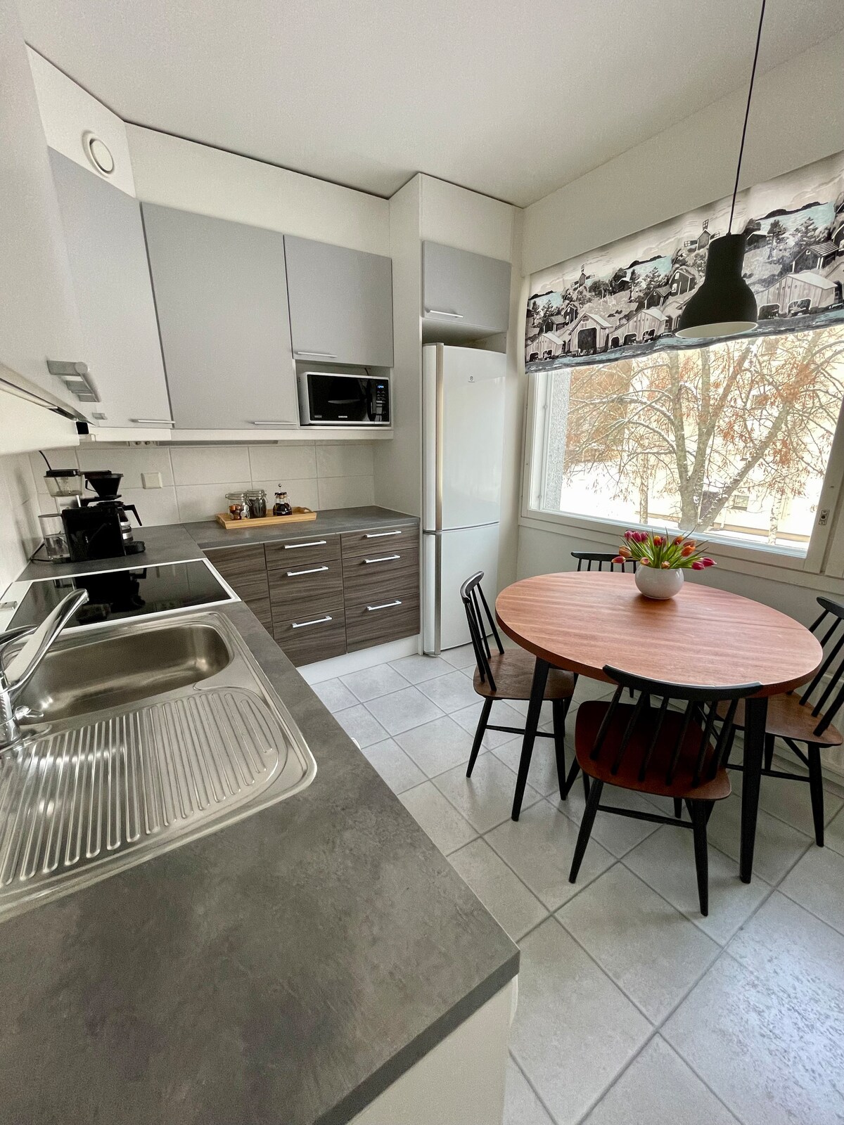 Wygodnie urządzony przestronny apartament z jedną sypialnią w cichej i bliskiej przyrodzie. Blisko plaży, a szlaki na świeżym powietrzu/narciarskie prowadzą tuż obok. Odległość do centrum Kotki wynosi około 9 km/12 minut. Odległość do centrum handlowego Godniemi wynosi 2 km/5 min. W apartamencie znajdziesz wszystko, czego potrzebujesz na czas pobytu. Widok z okien apartamentu otwiera się na parking i park. Bezpłatny parking przy ulicy latem lub na podwórku domu zimą.
