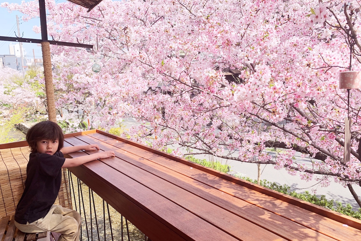 This apartment is a rare Japanese-style residence located beside the Takase River. Preserving traditional elements such as tatami, it was once home to a real geisha. While major sightseeing spots are within walking distance, guests can enjoy peaceful river views from the private balcony, where ducks often visit. Staying so close to the river in central Kyoto offers a truly special and tranquil experience. In spring, cherry blossoms briefly enhance this setting.