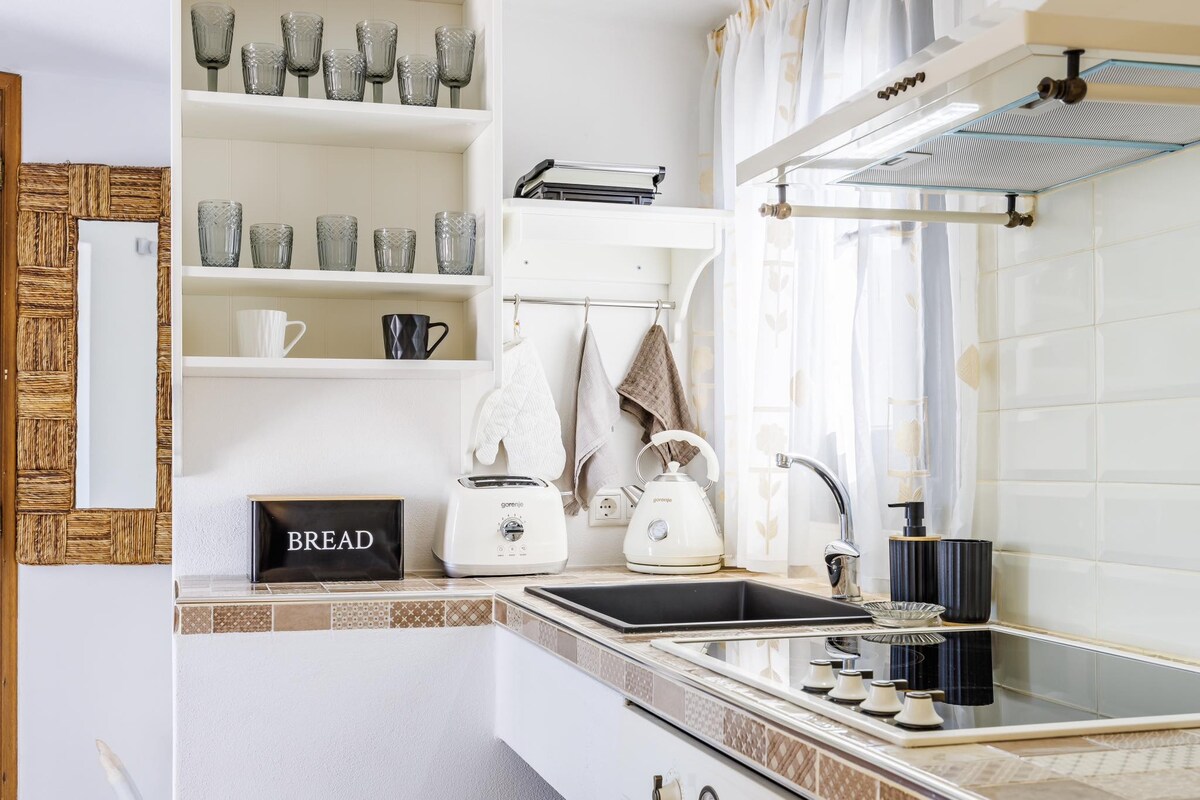 The fully renovated three-story Villa Skopelita offers a double bedroom, a twin bedroom with two single beds, and an extra single sleeping option via a pouf bed in the living room, ideal for a child. It includes two bathrooms and a bright living area. Highlights include its unique style and a spacious patio with breathtaking, uninterrupted sea views. Due to its location and overall buety, Villa Skopelita, is one of the island’s most photographed homes!