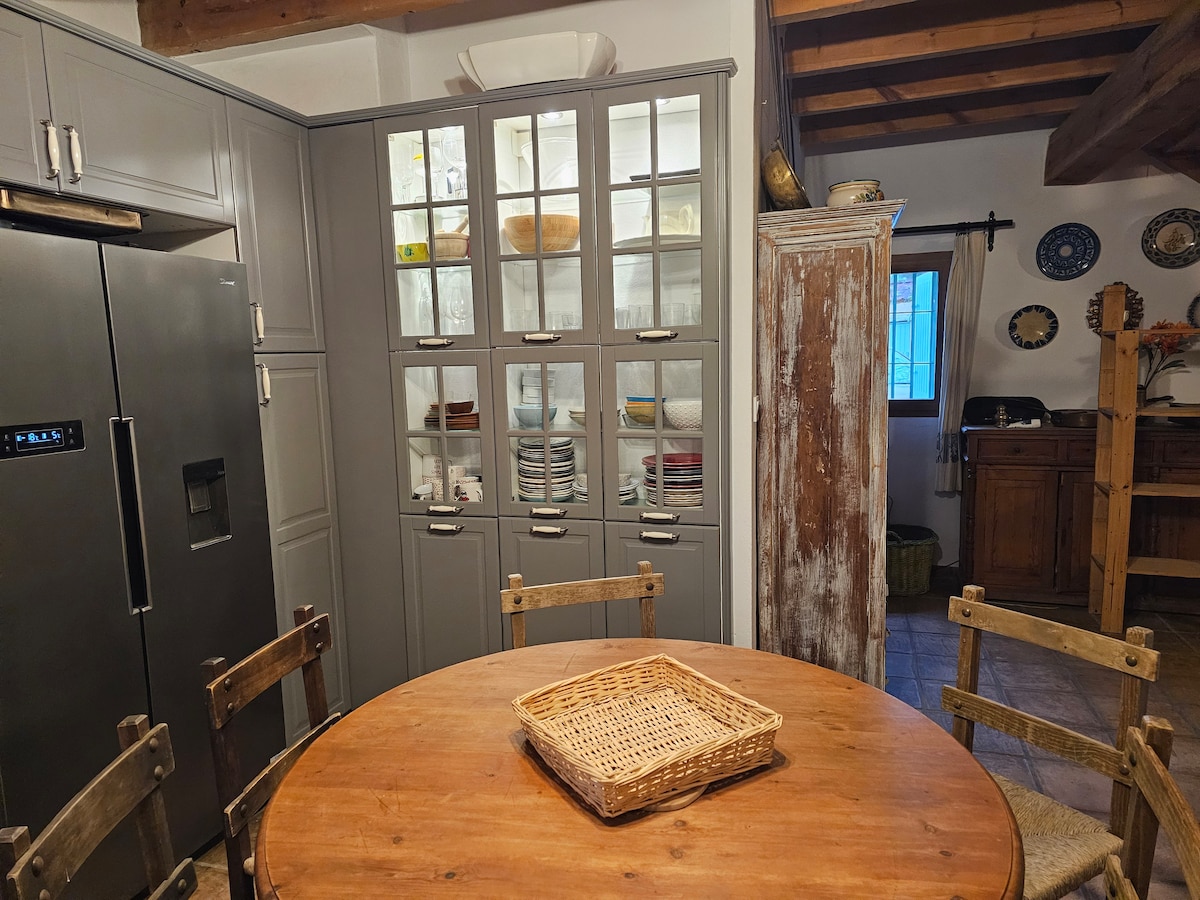 Beautiful country house away from the noise of the city. It is wonderful to spend summer evenings on any of its porches, in the large pool area or under the shade of its trees. Insertable fireplace with wood oven and heating. It is a house designed for life in nature. Fruit trees and chicken coop. that you can eat . 20 minutes from Seville by motorway. Exterior lighting. Privacy. All-terrain vehicle recommended but not always. Ask please