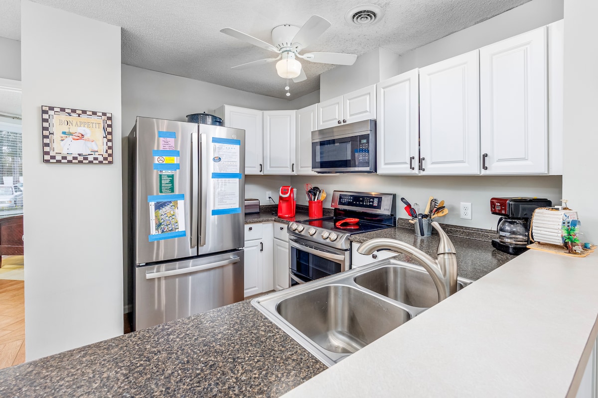 Roll your suitcase in: first floor-no steps condo. Relax in this spacious 2BR 2BA condo, w/ 1-king bed & 1-queen bed, screened porch, quiet community, 2 pools, hot tub, grill areas & 5 docks on intracoastal waterway, 1 mile to beach. Community is gated. A perfect place for a restful stay. City & community quiet hours 11pm-7am. Max guests 4 (incl:adults, children&infants) HOA rules NO: pets, motorcycles & golf carts Front door Ring door bell (24/7 sound & video recording&storage)