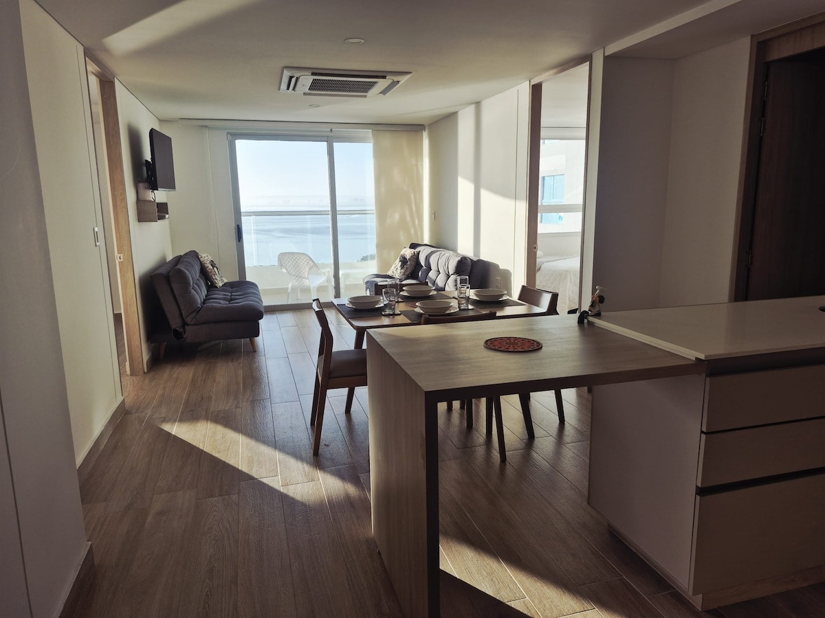🏝️ Witaj w Spiaggia Cartagena! Nowoczesny apartament w ekskluzywnej północnej strefie, na plaży, zaledwie kilka minut od zabytkowego centrum i 5 minut od lotniska. Posiada 2 sypialnie z pełnymi łóżkami i łóżkami pojedynczymi, rozkładaną sofę, w pełni wyposażoną kuchnię, klimatyzację, Wi-Fi, pralkę/suszarkę i balkon ze stołem jadalnym. Korzystaj z basenu na dach, jacuzzi, sauny, siłowni i całodobowej ochrony. Idealne do relaksu i odkrywania miasta z niezapomnianymi zachodami słońca z tarasu!