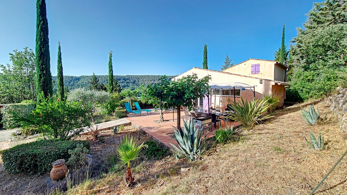 Niezwykły dom w głębi lasu. W zielonej Prowansji, otoczony lasami, gajami oliwnymi, zaroślami i winnicami. Kominek zimą, basen, boisko do petanque, drzemka, chwila medytacji, jogi lub czytania pod pagodą w lesie. W samym sercu natury, w wyjątkowym otoczeniu. Domek z wszelkimi wygodami, klimatyzowany, położony w spokojnie, aby można było odpocząć i odłączyć się od codzienności. Parking. Ogrodzenie dla naszych przyjaciół zwierząt. Idealne wakacje, aby odwiedzić piękne miejsca.