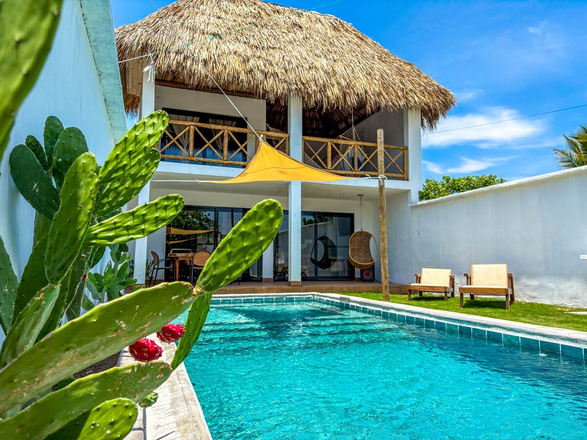 Witamy w Casa Nicolas, bujnym ranczo położonym w spokojnej i bezpiecznej wiosce El Pumpo, zaledwie 300 m od plaży i 3 km od tętniącego życiem miasta Monterrico. To zapierający dech w piersiach tropikalny wypoczynek dla całej rodziny, gdzie można wygrzewać się na słońcu, pływać w basenie, ćwiczyć i wiele więcej! Unikalny design, fantastyczne udogodnienia i wyjątkowe wyposażenie wprawią Cię w podziw. ✔ Domek gościnny Kuchnia na✔ świeżym powietrzu ✔ Basen ✔ Hammocks ✔ Darmowy parking Zobacz więcej poniżej!