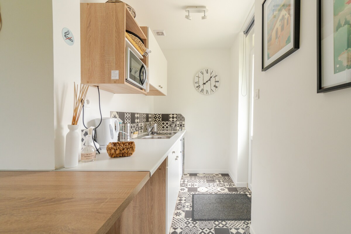 Prywatne spa dla 6 osób Apartament o powierzchni 100 m2 składający się z wyposażonej kuchni, salonu z rozkładaną sofą narożną, jadalni, trzech sypialni, z których jedna posiada łazienkę, dodatkowej łazienki z prysznicem i wanną, oddzielnej toalety. Ogród z zamkniętym tarasem, stołem ogrodowym i grillem gazowym. Karta dostępu do jeziora dostępna w obiekcie Możliwość zaparkowania trzech pojazdów na miejscu. Sprzątanie, pościel i ręczniki wliczone w cenę wynajmu