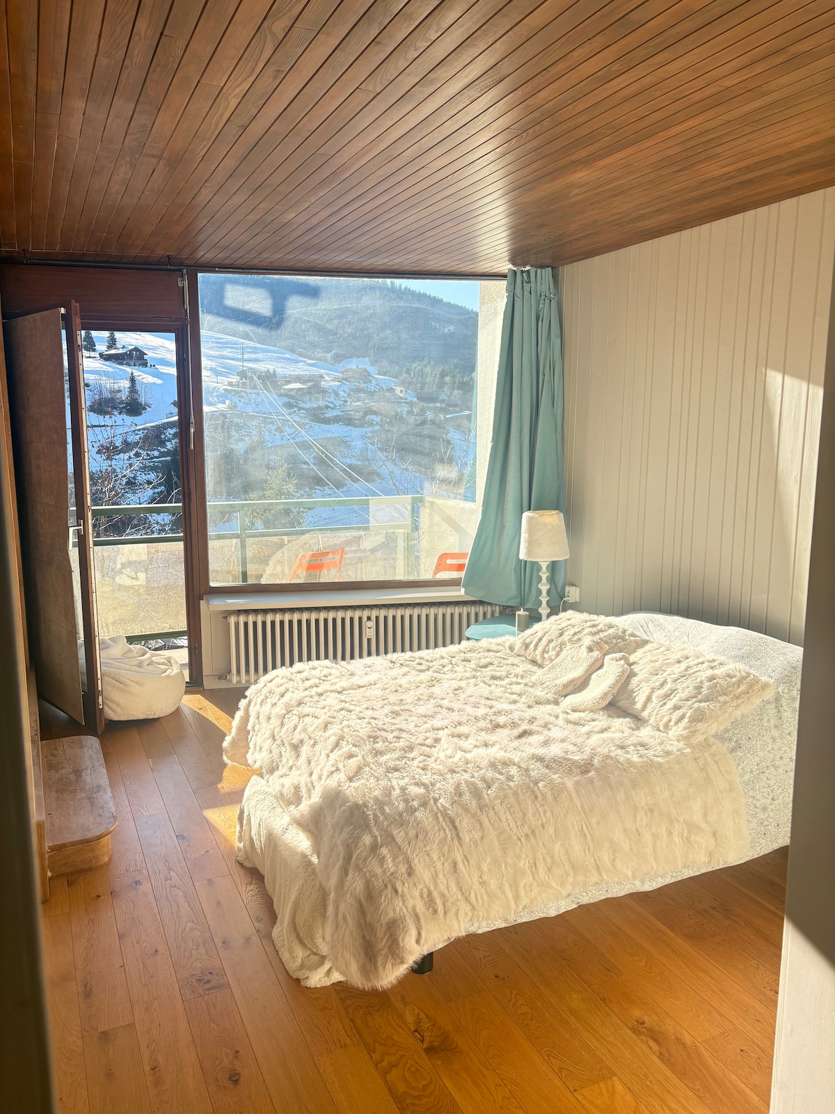 Exceptional location in the village, everything within walking distance. Crêt du Merle chairlift only 50m away. Cosy studio for 4 guests, fully equipped: Loft double bed 140x200 Sofa bed 160x190 Fully equipped kitchen (dishwasher) Bathroom / WC Living area with village and mountain views South-facing balcony with outdoor furniture Washer-dryer Baby cot available on request High-speed fiber Wi-Fi Bed linen and towels provided Public parking 20m away (free from May to November, paid in winter).