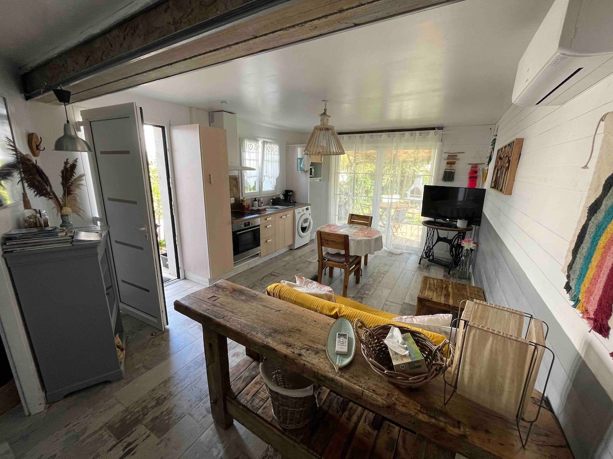 Nowe studio w pięknej małej wiosce La Cotinière, 5 minut spacerem od portu, sklepów (piekarnia, targ, sklep spożywczy, wypożyczalnia rowerów, apteka itp.) i plaży. Na nieruchomość składają się: • W pełni wyposażona kuchnia, piekarnik, kuchenka mikrofalowa, płyta indukcyjna, zmywarka, telewizor, Wi-Fi... • Sofa: pościel 140 Dunlopillo, pościel kabina prysznicowa, umywalka, toaleta, suszarka do włosów, pościel toaletowa • salon ogrodowy, grill
