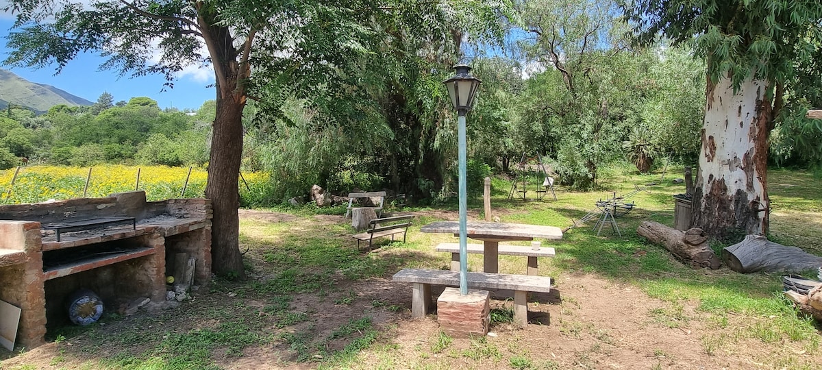Cały dom rodzinny, przestronny i wygodny, zwrócony w stronę rzeki, w dużym ogrodzie pełnym drzew owocowych, w San Esteban, pięknej i spokojnej wiosce. Łatwy dojazd samochodem lub autobusem, dziesięć km od Capilla (Cerro Uritorco) i La Cumbre. Spiżarnia i przystanek autobusowy bardzo blisko. Trzy sypialnie, bardzo pełna kuchnia, lobby, pralnia, pralnia, grill, garaż, garaż, Wi-Fi. Świeże latem i ciepło zimą. Jesteśmy blisko wszystkiego, czego potrzebujesz! Twoje pytanie nie przeszkadza Ci!