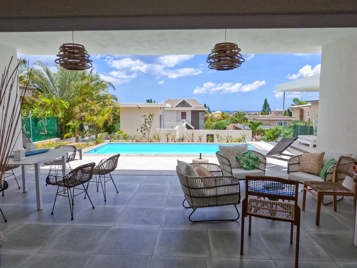 Stylowy i nowoczesny apartament z 2 sypialniami i 2 łazienkami z widokiem na morze i góry, w pobliżu plaży. Kilka minut od tętniącego życiem centrum handlowego z restauracjami, pubami, sklepami i supermarketem. Ciesz się spokojem nad morzem i łatwym dostępem do głównej drogi łączącej najważniejsze atrakcje wyspy. Nowo odnowione apartamenty, zaprojektowane w eleganckim stylu épurée, idealna baza do relaksu i niezapomnianego wypoczynku na wyspie.
