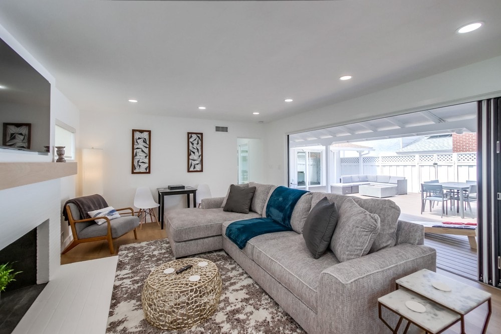 Completely remodeled. Just minutes from many beaches, the famous cove and La Jolla Village. This home boasts modern amenities and an amazing outdoor space including fire table, barbeque and 65" Smart TV. King bed in the master suite and queen beds in the other two bedrooms. Multi-head, walk-in showers with floor to ceiling custom tile. Sound in every room & Smart TV's throughout. Gourmet kitchen, and complete indoor/outdoor living with 5 sliding glass doors and a 13 ft. opening glass wall.