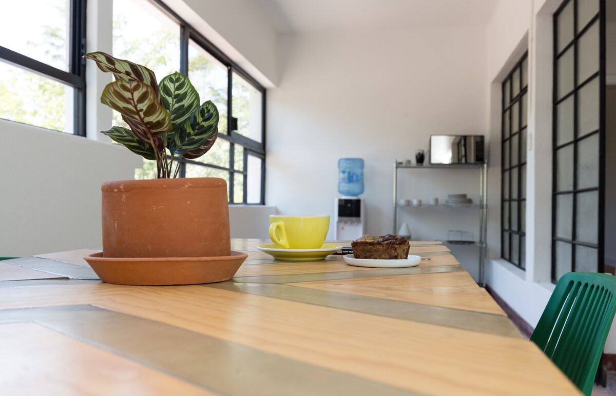 Całkowicie nowy, luksusowy pokój o powierzchni 40 m2 z unikalnymi udogodnieniami, zaprojektowany z myślą o przyjemnym wypoczynku i doświadczeniu atmosfery Valle de Guadalupe. Odpowiedni dla dwóch osób w łóżku typu Queen, dostępna klimatyzacja, kącik do czytania z 2 sofami w bardzo przytulnej i czystej przestrzeni, dostępny ekspres do kawy. Nowoczesna i przestronna łazienka wyposażona jest w udogodnienia takie jak: lusterko, mydło, szampon, odżywka i ręczniki do rąk.