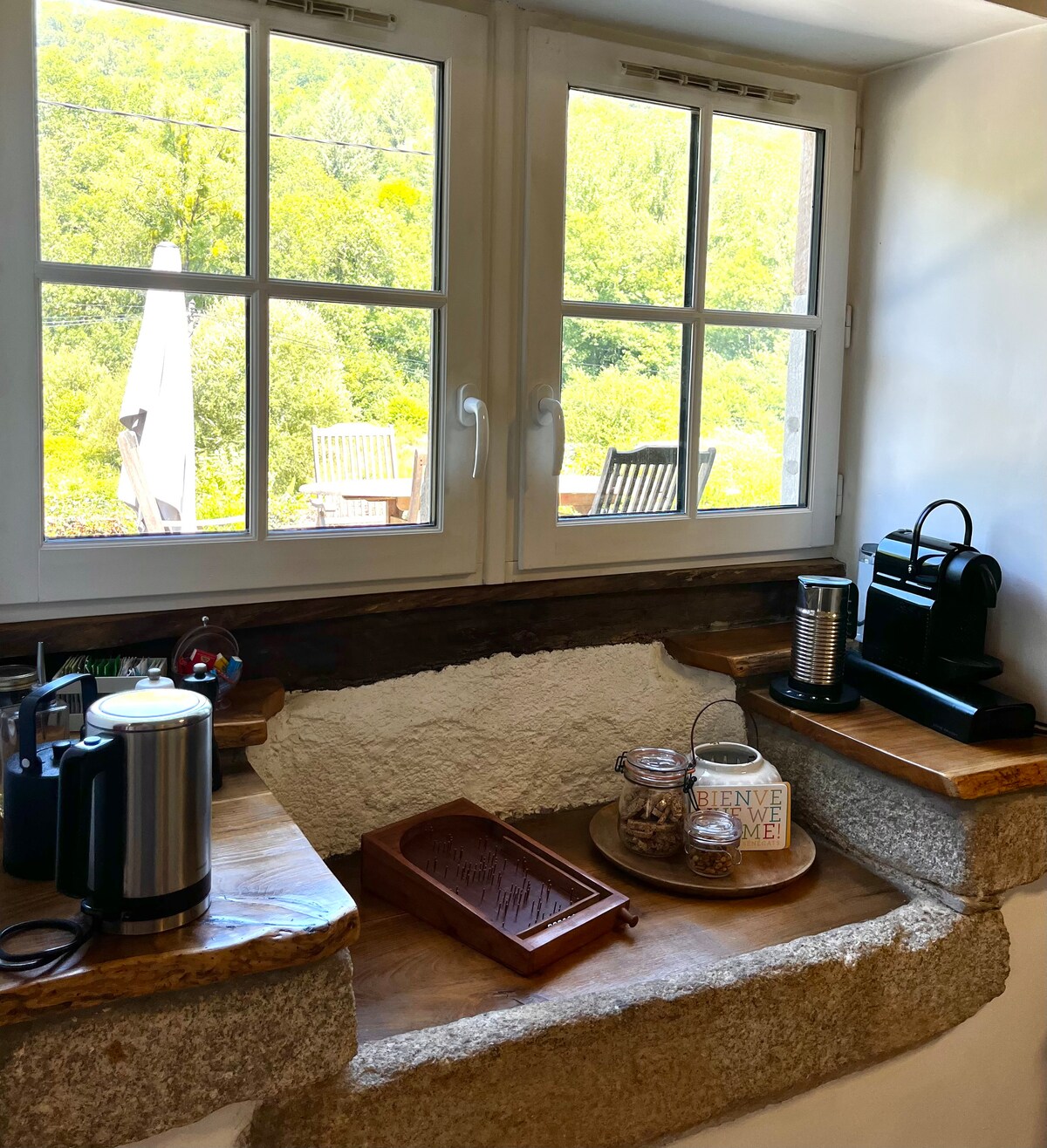 Geniet van de rust, het uitzicht en het comfort van dit stijlvolle chalet. Zeer geschikt als romantisch uitje of even bijkomen in de natuur met je gezin. Wij zitten op 650 meter hoogte, in een hete zomer is het altijd iets koeler dan in het dal en met een briesje, heel aangenaam. In de nacht koelt het meer af en is het lekker slapen. Een airco hebben wij niet nodig. Honden zijn welkom, € 15 per verblijf. Voor de winter is er een houtkachel. Wij leveren een kruiwagen met stookhout voor €15.