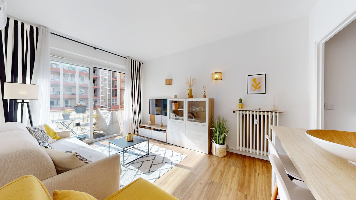 Newly refurbished studio apartment in a historic and traditional Nice building built in 1834 where the famous French artist Henri Matisse lived and painted several masterpieces such as The Bay of Nice in 1918. Fantastic panoramic sea view from the balcony. Beau Rivage beach and lounge on your doorstep. Just a few minutes walk to the city heart, the old town (great at day and night), many restaurants and shopping areas. Cozy and luminous as the apartment is facing South. 32 m2 room (344ft2)