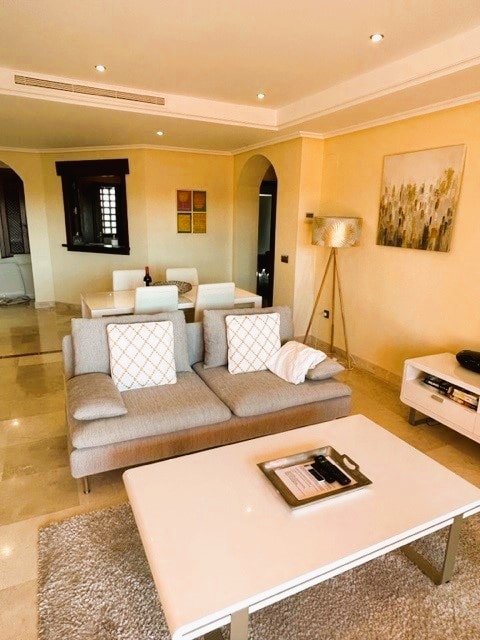 Nasz nowy apartament HIGHend, zaledwie 8 minut od centrum Marbelli. Oferuje widoki na morze, tworząc spokojną atmosferę na hiszpańskie wakacje. Apartament ma skandynawską elegancję z czystymi liniami, neutralnymi tonami i minimalistycznym wzornictwem, tworząc jasną i wyrafinowaną atmosferę na niezapomniany pobyt. Nasz gość może bezpłatnie korzystać ze spa z podgrzewanym basenem, sauną i siłownią, a wszystko to z fantastycznym widokiem na morze. Siłownia jest dobrze wyposażona w maszyny najwyższej klasy, a klub dodaje elementu towarzyskiego do pobytu.
