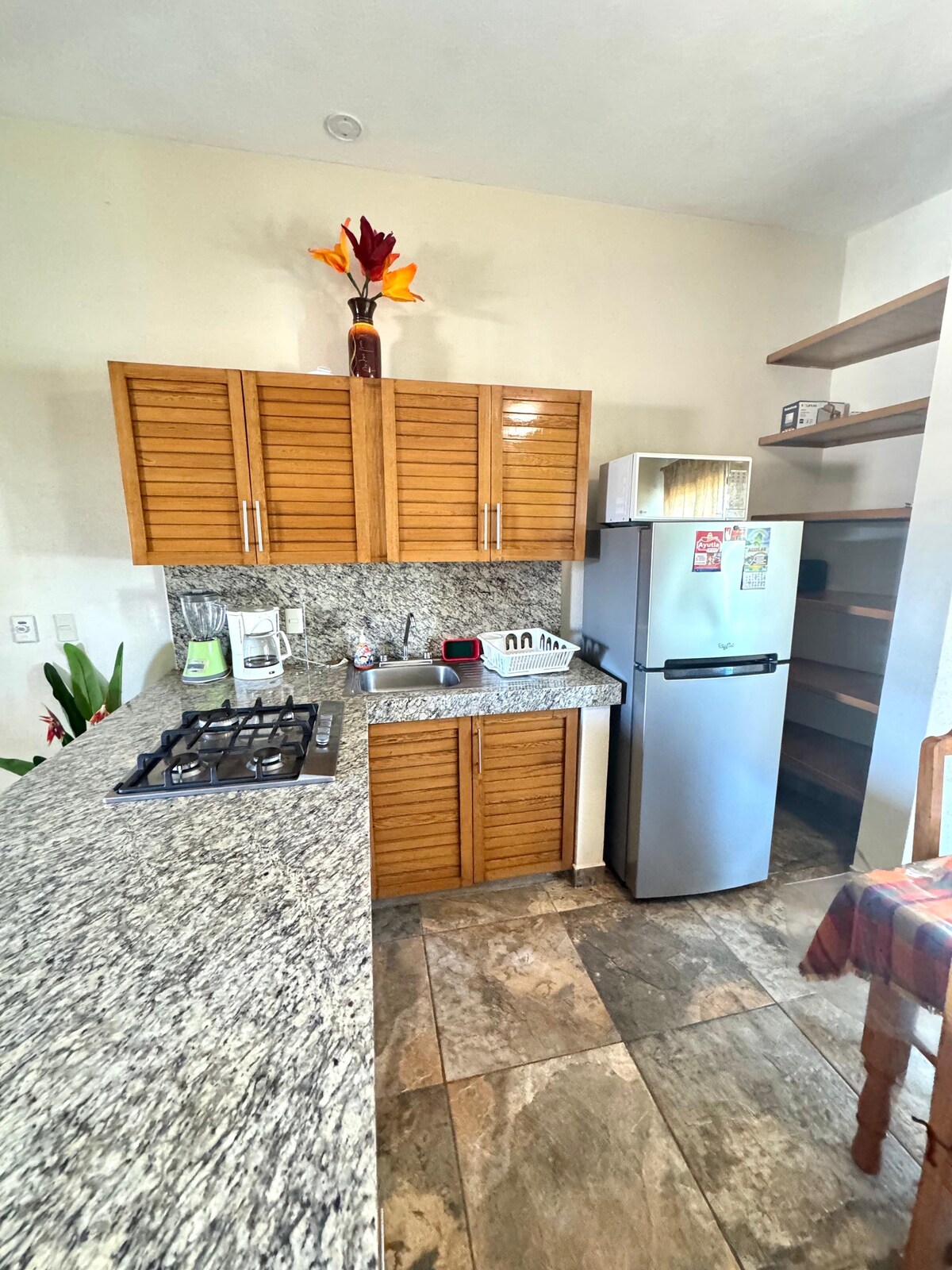 Witaj w Villa Gadi, nowej i eleganckiej prywatnej willi w Manzanillo, przyjaznej dla zwierząt, gdzie otacza Cię luksus, spokój i nowoczesny design. Zrelaksuj się w niewielkim podgrzewanym basenie (2,5 m × 1,3 m × 0,6 m głębokości, bez dysz), podziwiaj zachody słońca z ogrodu na dachu i przygotuj kolację w piecu opalanym drewnem lub na grillu. Odpręż się w hamakach, unoszonych przez tropikalną bryzę. Klimatyzacja w całej willi, w tym w 3 sypialniach z wygodnymi łóżkami i telewizorami. Plaża znajduje się w odległości 10–15 minut jazdy.