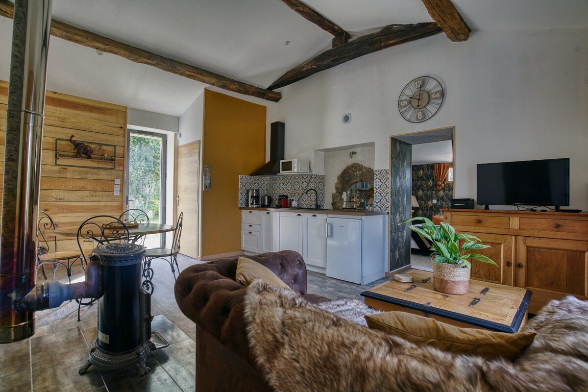 Niezależne studio o powierzchni 27 m2 położone w zalesionym i spokojnym parku. Chcielibyśmy zaznaczyć, że pokój znajduje się na antresoli z dość stromymi schodami (patrz załączone zdjęcie). Możliwość spaceru wokół dużego stawu lub zapewniamy łódź na relaksujący moment na wodzie. 3 minuty jazdy do Beaulieu sous la Roche (piekarnia, supermarket...), 25 minut do Les Sables d'Olonne i jego plaż, 1 godzina do Puy du Fou i dostęp do Chemin du GR przy drzwiach studia
