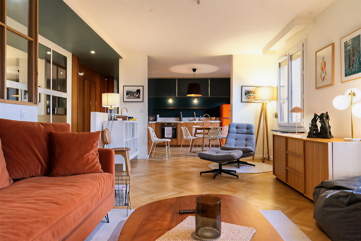 75 m² loftu na 11. piętrze – otwarty plan, przestronny układ i przemyślany projekt autorstwa projektanta wnętrz. Prawdziwa oaza w samym sercu Lyonu. Idealne dla rodzin (sprzęt dla niemowląt w cenie), par lub osób pracujących, które szukają spokoju i komfortu oraz szybkiego internetu światłowodowego. Uwaga: od marca do czerwca 2026 roku w naszym budynku będą prowadzone prace remontowe, co oznacza, że w tym czasie widok będzie częściowo zasłonięty. Odpowiednio dostosowaliśmy nasze ceny.
