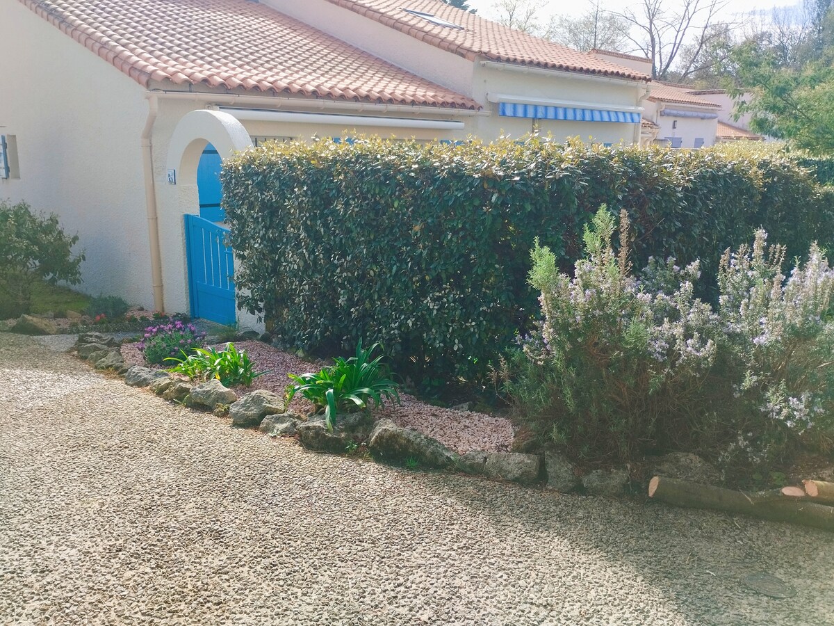 A louer toutes saisons jolie villa charentaise de vacances de plein pied avec garage, terrasse et cour fermée, au pied des pistes cyclables, 700 m des commerces et 1.5km de la mer, dans une résidence calme et boisée, pouvant accueillir 8-9 personnes