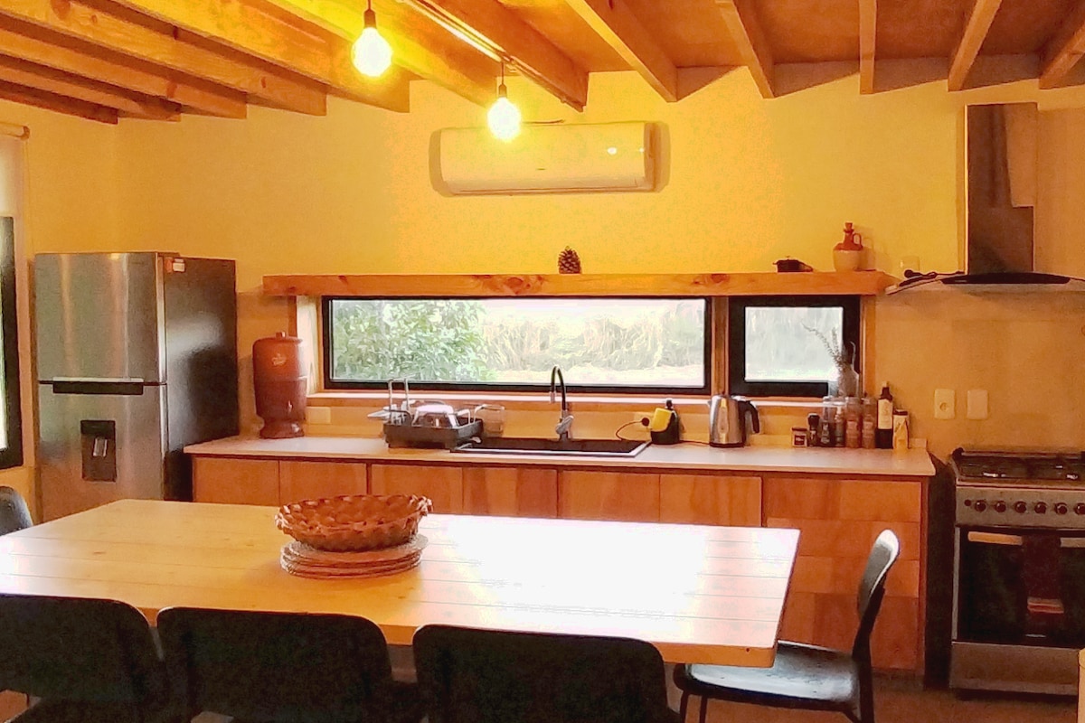 Piękna i bardzo ciepła chatka z bali, idealna na każdą porę roku, aby cieszyć się plażą, lasem i spokojem. Posiada Wi-Fi. Znajduje się na dużym terenie i jest całkowicie ogrodzony, dla spokoju ma alarm i drewniane okiennice w otworach. Piękny i przestronny piec na drewno, zadaszony taras ze stołem do grillowania, fotele i hamak paragwajski, grill i palenisko w ogrodzie. Koszt ute i ose jest doliczany oddzielnie.