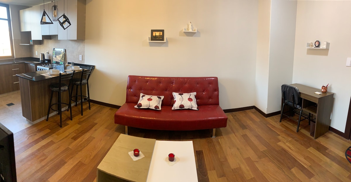 Apartament z jedną sypialnią położony w Sopocachi, spokojnej dzielnicy w centrum miasta. W pobliżu wszystkich ważnych miejsc, dzielnicy turystycznej, aptek, banków, bankomatów, sklepów, pubów, kawiarni i restauracji. 12 minut od Teleferico Sopocachi i 6 minut od głównej alei miasta Av. 16 de Julio „El Prado”. > Internet Wi-Fi: 60 MB (pobieranie) – 25 MB (wysyłanie) > Centralne ogrzewanie (w nocy zgodnie z harmonogramem) > Netflix > Uniwersalne gniazdka ścienne > Panoramiczny widok na miasto > Kamery monitorujące