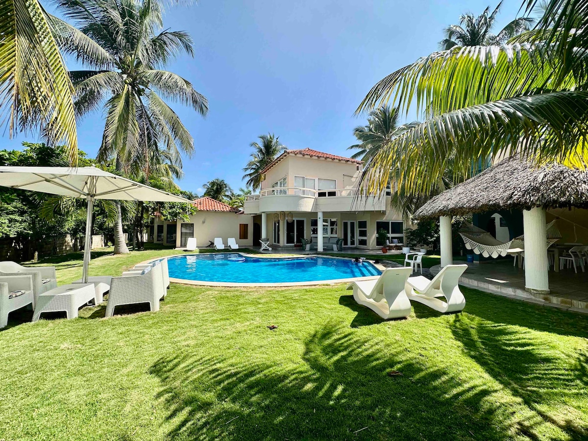Front beach, spacious accommodation is unique , in the best area of the coast of the sun , with different spaces for you to enjoy and if you prefer you can have an additional kitchen service, 30 minutes from the airport, we are pet-friendly, spacious pool , Hamaqueros ranchos, gardens , 4 bedrooms, 6 bathrooms , it is usually rented for 15 people but has more rooms to host, you won 't want to leave the property , but there's more activities
